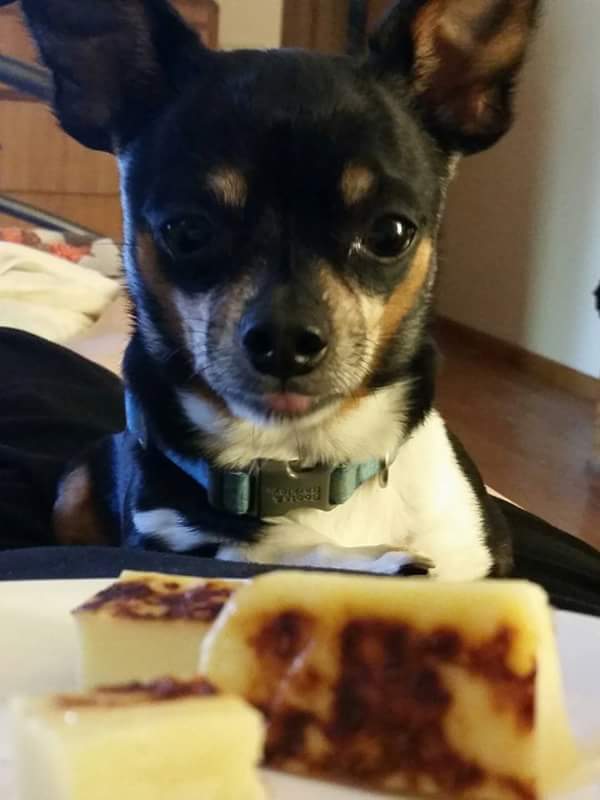 Today I decided to have breakfast in bed. It is not that I am particularly lazy or consider myself the Queen Bee or anything, (admittedly, I am a little bit of both), but the morning view from my bedroom of a bright pink flowering crabapple tree against a backdrop of blue sky and green grass is what drew me back in. That, and fact that the mornings are just a little bit too chilly to be dining outside. “Dining” is not exactly the term that I would use for my simple country breakfast of coffee and juusto. Juusto, also known as juustoleipa is a warm Finnish cheese, but when I was growing up in my strongly Scandinavian household, we called it “squeaky cheese”, for the way it squeaked against our teeth when we chewed. Made from cow, goat, sheep or even reindeer milk if you happen to own a reindeer, juusto is a fairly easy cheese to make, so they say. It keeps well, and Finnish Farm Women in the old days would even dry it to store in their larders to eat when fresh milk wasn’t available for cheesemaking. (I hope they didn’t store it next to their dried stinky lutefisk.) It is traditionally served with coffee, bread, and jam, and to me, tastes like a buttery grilled cheese sandwich without the bread. I remember my mother making it only once or twice, and since I recently discovered it in the grocery store, I haven’t bothered with trying it myself, so I won’t infringe on any copyright laws by sharing a recipe that is not my own. There are plenty of recipes available on the internet, if you are so inclined. I usually warm mine in a pan or on the grill, but the package even gives microwave instructions. (My Finnish Farm Woman ancestors, who even warmed theirs by putting it in a cup and pouring hot coffee over it, are probably rolling over in their graves right about now.) Barney the Chihuahua was hoping for a bite and was following closely behind me with every step I took, but then again, he would follow closely behind me if I was preparing warmed-over Finnish shoe leather for breakfast. I have served juusto as an appetiser, with coffee (on the side, not in the cup), or diced in a salad with mixed greens and vinaigrette dressing, but my favorite way to eat it is just the way I did this morning: Warmed in a pan and eaten while in bed on a Sunday morning, with the beautiful flowers of late spring right outside the windows, a cup of coffee and a cute but begging little dog within my reach. I would like to think that my Finnish Farm Woman ancestors would be proud that I am keeping with tradition. Maybe not, though…by this time of the morning, they would have already milked the reindeer, stoked the kitchen fire, gathered the eggs, and scrubbed the